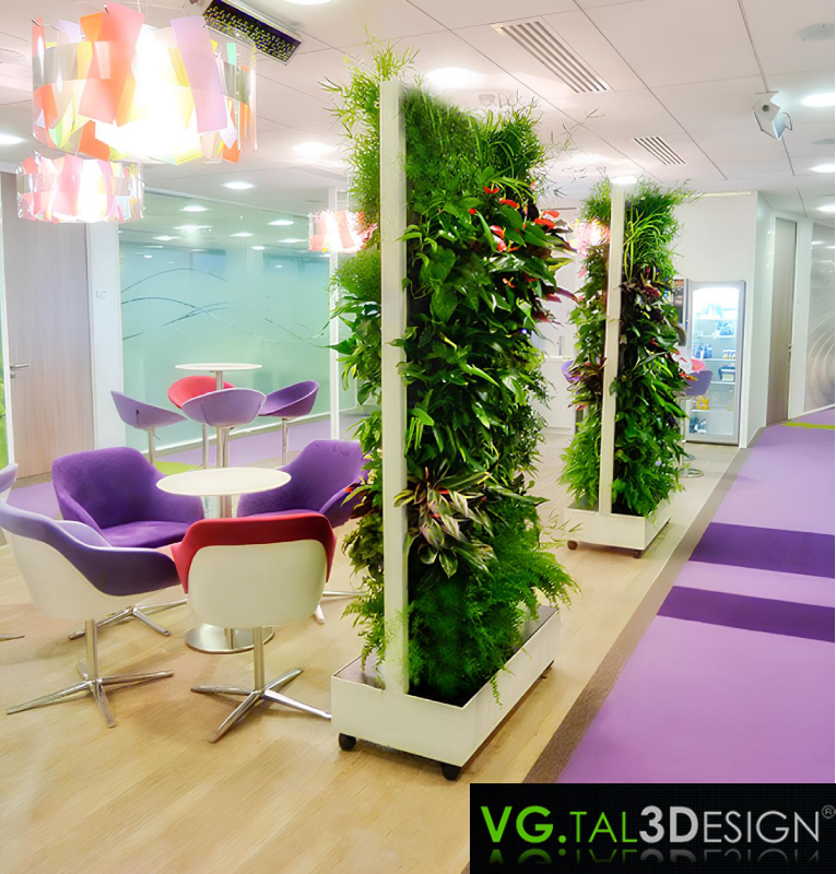 Nous avons conçu un module végétal "cloison" pour un espace détente à Paris (France), mesurant 2,2 mètres de hauteur sur 1 mètre de longueur. Ce module est idéal pour cloisonner des open spaces et améliorer les conditions de travail. La structure autoportante en inox, avec un coloris blanc musée mat, permet une végétalisation recto/verso, avec environ 160 végétaux par module. L'éclairage spécifique à LED horticoles met en valeur l'ensemble. Nos modules "cloison" offrent une solution pratique et esthétique pour structurer des espaces tout en composant un paysage naturel et pédagogique. Ils constituent également un atout pour les entreprises qui souhaitent entretenir une image écologiquement responsable.