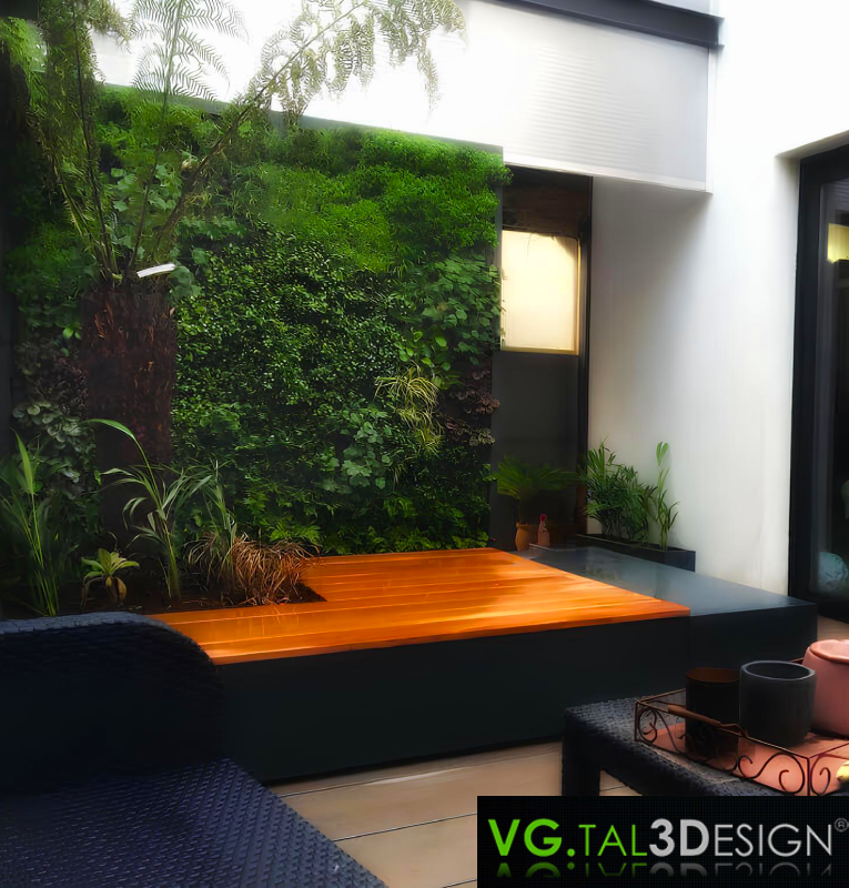 Nous avons conçu un mur végétal pour l’aménagement d’une terrasse extérieure au Touquet-Paris-Plage (France), mesurant 2 mètres de hauteur sur 2 mètres de longueur. Les panneaux végétaux ont été pré-cultivés dans nos serres afin d’assurer un rendu optimal dès l’installation. L’assemblage est réalisé sur site, garantissant une intégration harmonieuse et un impact visuel immédiat. Ce mur végétal apporte une touche naturelle et vivante à l’espace extérieur, tout en nécessitant un entretien réduit.
