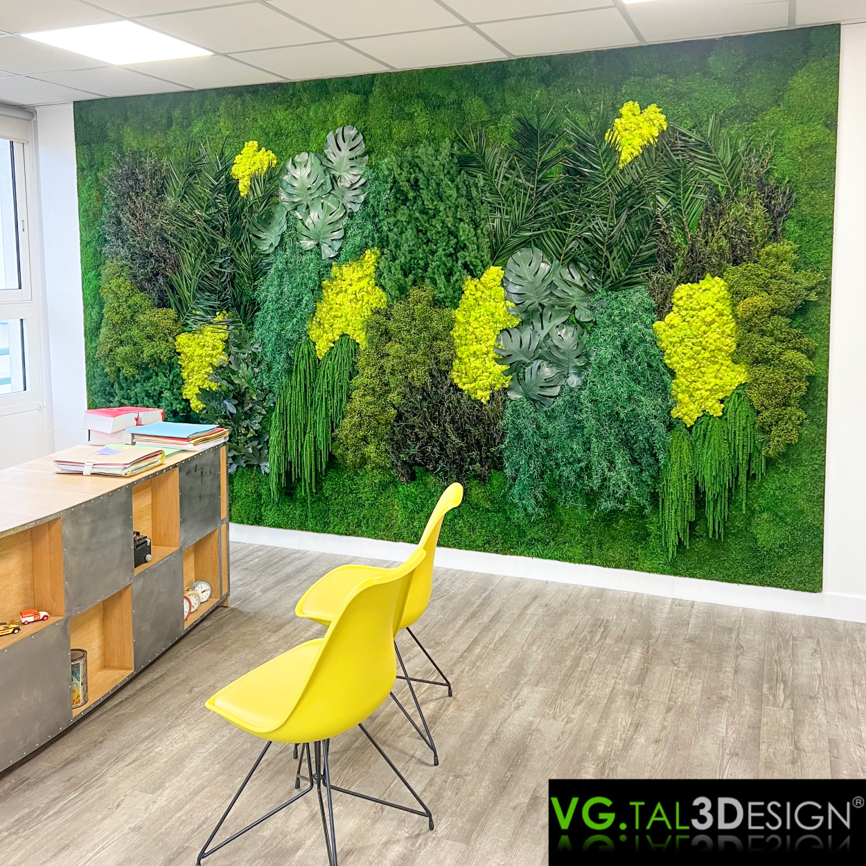 Pour un cabinet d’avocats à Bordeaux, nous avons réalisé un mur végétal apportant une touche naturelle et élégante à l’espace. D’une hauteur de 2m50 et d’une longueur de 3m, il a été conçu dans nos ateliers avant d’être assemblé sur site, garantissant une intégration harmonieuse et sans entretien.